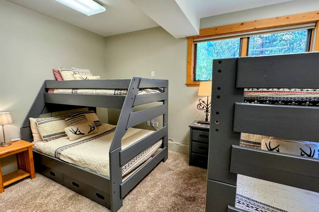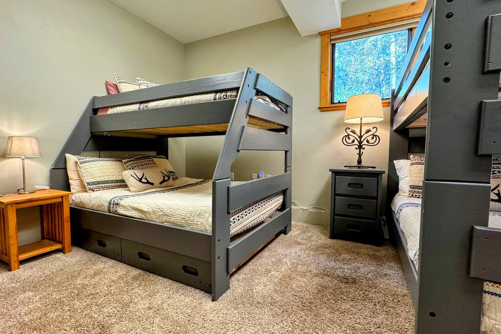 Less than 1 mile from downtown Breckenridge and to the gondola, the Elkhorn Lodge is a breathtaking 5 bedroom (+1 non-conforming bunk bedroom), 4 bathrooms private home that comfortably hosts up to 12 guests. Mountain Views all around! Our home is perfectly fit for large families or multiple small families. The home was designed to allow guests to connect together in one space, or separate into groups in other rooms of the home.
